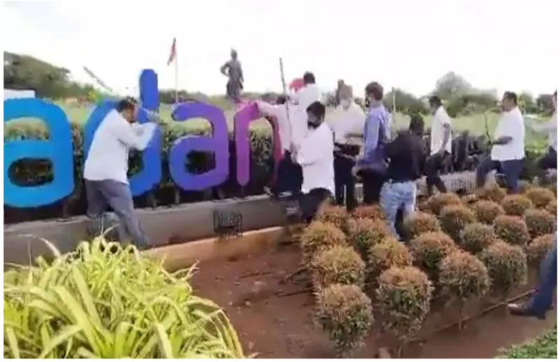 Shivsena Workers Vandalized Mumbai International Airport, Tore Adani Group Signboard