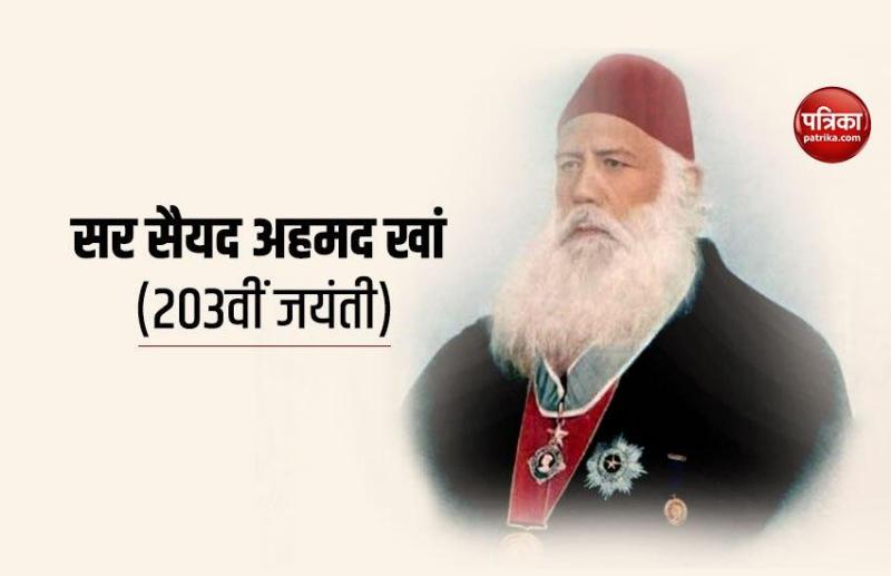 नई दिल्ली। सर सैयद अहमद खां (Sir Syed Ahmad Khan) का जन्म 17 अक्टूबर, 1817 को दिल्ली में हुआ था। शुक्रवार को उनकी 203वीं जयंती (203rd birthday of Sir Syed Ahmad Khan) है। इस दिन को सर सैयद डे (Sir Syed Day) के रूप में भी मनाया जाता है। वे आज भी दुनियाभर में शिक्षाविद, समाज सुधारक, पत्रकार और इतिहासकार के रूप में पहचाने जाते हैं। उन्हें समाज के लिए कुछ भी करने का जुनून था। उन्होंने शिक्षा और विज्ञान को गहराई से समझा। वे चाहते थे कि भारतीय किसी से भी पीछे नहीं रहें। उन्हें बखूबी पता था कि यह शिक्षा के माध्यम से संभव हो सकता है। इसलिए उन्हें शिक्षा जगत का 'पैगम्बर' भी कहा जाता है।