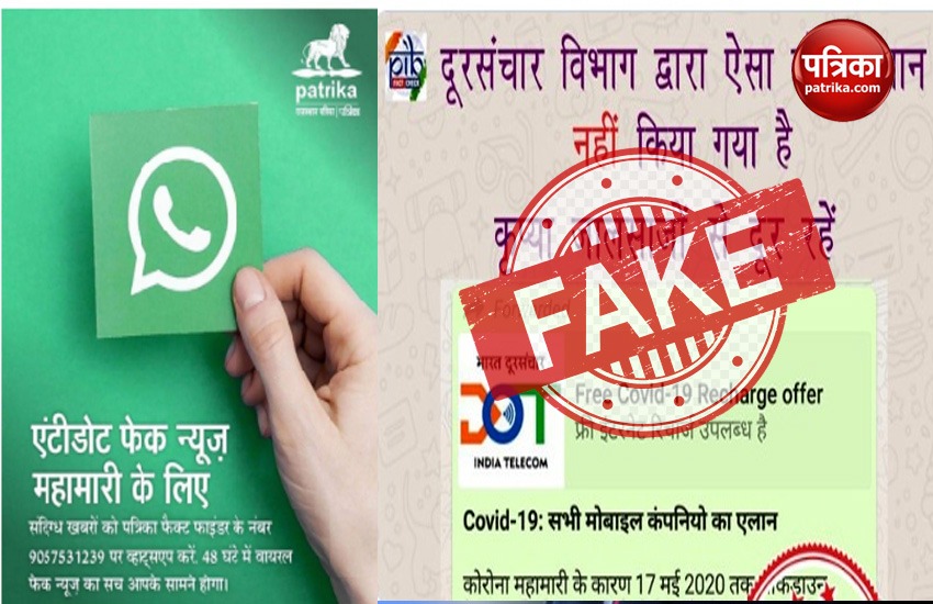 पत्रिका फैक्ट चेक: क्या सच में दूरसंचार विभाग 17 मई तक मोबाइल यूजर्स को फ्री इन्टरनेट देने का किया है ऐलान, जानिए हकीकत