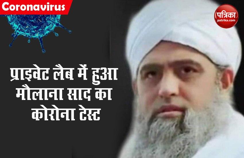 दिल्ली के निजामुद्दीन इलाके में मरकज से देश के विभिन्न राज्यों में गए तबलीगी जमातियों के भजने वाले मौलाना साद ने कोरोना का टेस्ट एक निजी लैब में करवाया है।