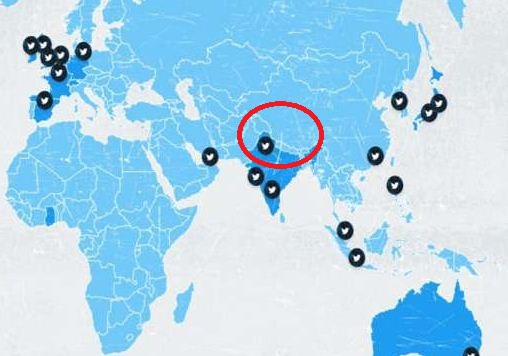 अपने नक्श में ट्विटर ने एक और बड़ी गलती है। उसने जम्मू-कश्मीर और लद्दाख के हिस्से को एक अलग देश के तौर पर दर्शा दिया है।