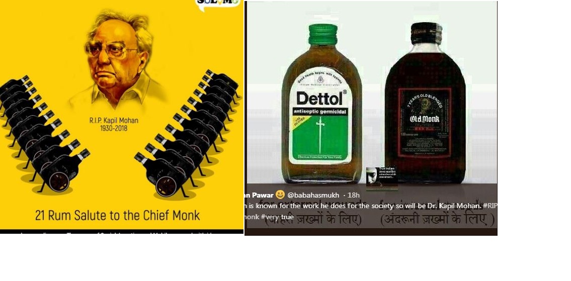 उत्तर भारत में इन दिनों काफी ठंड है। इस ठिठुरती ठंड में अक्सर अपने लोगों से रम पीने की सलाह देते सुना होगा। कईयों ने तो बकायदा ओल्ड मॉन्क रम ही खरीदने पर जोर भी दिया होगा। इन बातों को पढ़कर आप कतई न सोचे कि हम भी आपको रम पीने की सलाह दे रहे हैं। दरअसल रम को घर-घर तक पहुंचाने वाले कपिल मोहन नहीं रहे। कपिल मोहन आर्मी में रह चुके हैं और ब्रिगेडियर रहते ही उन्होंने रिटायरमेंट लिया था। 2010 में उनको पद्मश्री पुरस्कार मिला था। ओल्ड मॉन्क का पिता कहे जाने वाले कपिल मोहन के बारे में कहा जाता है कि उन्होंने कभी शराब का सेवन नहीं किया। वे एक बेटी की पिता थे जिनकी मृत्यु तीन महीने पहले हुई थी।