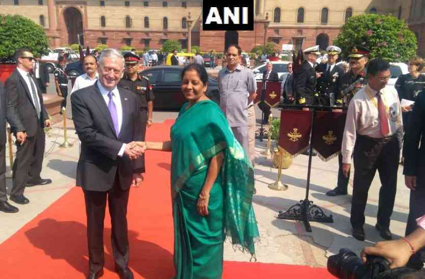 नई दिल्ली। अमरीकी रक्षा मंत्री जेम्स मैटिस मंगलवार को भारत पहुंचे। इस दौरान उनकी समकक्ष भारत की रक्षा मंत्री निर्मला सीतारमण ने उनका स्वागत किया। मैटिस पीएम मोदी और राष्ट्रीय सुरक्षा सलाहकार अजीत डोभाल से भी मुलाकात करेंगे।