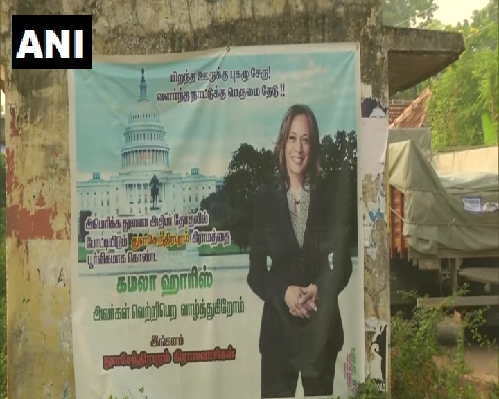 VP candidate Kamla Harris's Poster in native village Thulasendrapuram