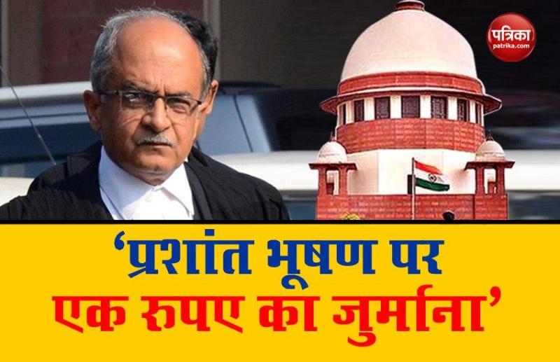सुप्रीम कोर्ट ने प्रशांत भूषण पर लगाया एक रुपए का जुर्माना।