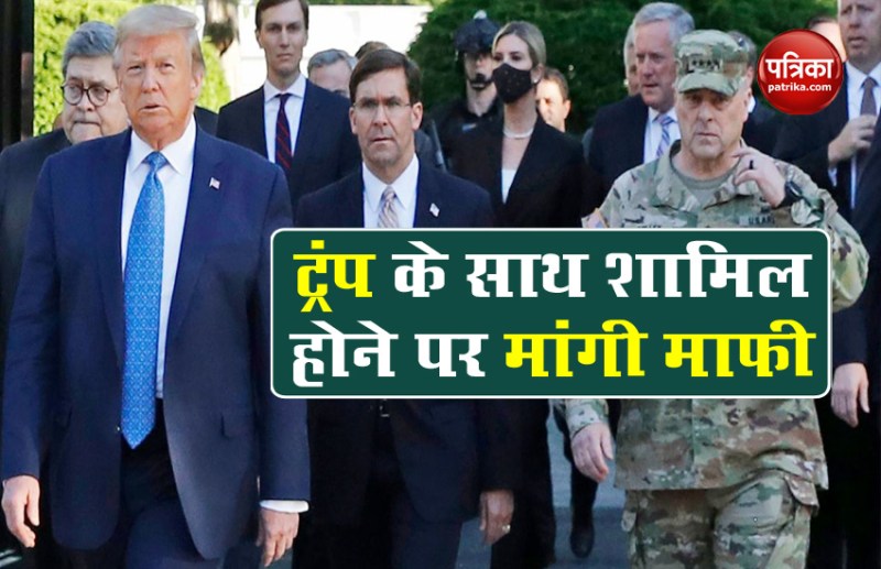वाशिंगटन। अमरीका के शीर्ष जनरल ने बीते हफ्ते वाइट हाउस (White House)के बाहर शांतिपूर्ण प्रदर्शनों के बीच राष्ट्रपति डोनाल्ड ट्रंप के साथ एक चर्च के दौरे पर दिखाई देने के लिए माफी मांगी है। इस कदम को उन्होंने गलती कहा और उनकी उपस्थिति को घरेलू राजनीति में शामिल होने का संकेत माना गया।