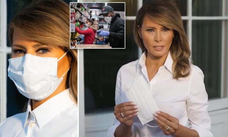 मास्क पहने अमरीकी राष्ट्रपति की पत्नी मेलानिया ट्रंप।