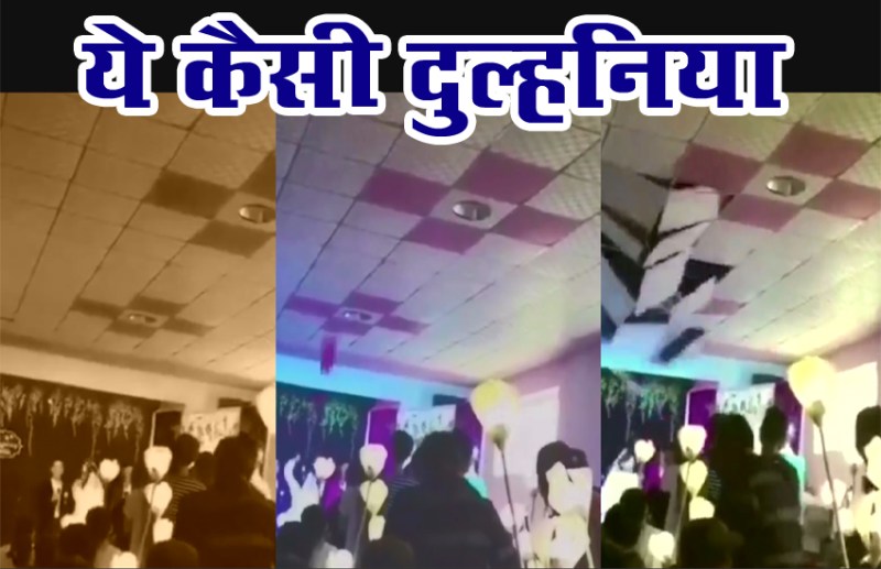 आईए आपको पूरा मामला समझाते हैं...इस वीडियो में दुल्हन को गौर से देखिए...शादी की रस्मों के दौरान जब चावल या फूलों का गुलस्ता पीछे उड़ाने की रस्म के दौरान जैसे ही ये दुल्हन अपने हाथ से एक बुके(फूलों का गुलदस्ता) उड़ाती है, वैसे ही ये गुलस्ता ऊपर सीलिंग (छत) से जा टकराता है...बस फिर क्या था ये कमजोर छत इस गुलस्ते के टकराते ही धड़ाम से नीचे आ गिरती है...और वहां मौजूद बाराती इसकी चपेट में आ जाते हैं।