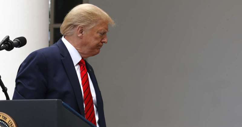 प्रेस कांफ्रेंस को छोड़कर जाते डोनाल्ड ट्रंप।
