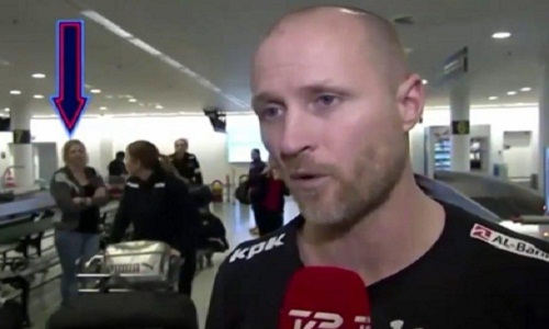 आपको बता दें एयरपोर्ट पर एक खलाड़ी का इंटरव्यू लिया जा रहा था। कैमरा खिलाड़ी के साथ-साथ एयरपोर्ट का व्यू भी ले रहा था। खिलाड़ी के ठीक पीछे एक महिला भी कैमरे में साफ नजर आ रही थी। ऐसा लग रहा था जैसे कि वो महिला उस खिलाड़ी की बातें सुनने के लिए वहां खड़ी हो गई है। लेकिन अचानक ही कुछ ऐसा हुआ जिसे देख कैमरामैन के होश उड़ गए।