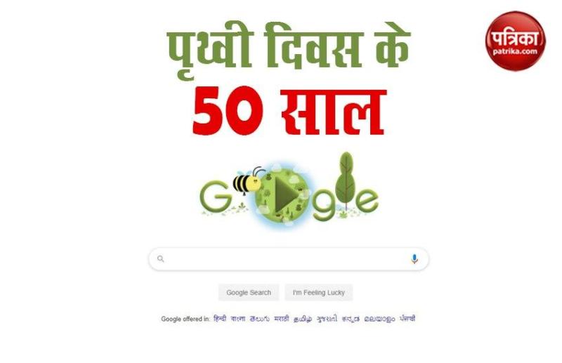 नई दिल्ली। दुनियाभर में आज (हर साल 22 अप्रैल ) पृथ्वी दिवस (Earth Day) मनाया जाता है। इस साल पृथ्वी दिवस (Earth Day 2020) के 50 साल पूरे होने के खास मौके पर गूगल (Google) ने एक खास डूडल (Doodle) बनाया है, जिसमें पृथ्वी के सबसे छोटे जीवों में से एक 'मधुमक्खियों' को समर्पित किया है। इस डूडल को पृथ्वी और पेड़ों से बनाया गया है। इसपर एक प्ले बटन दिया गया है जिसे क्लिक करते ही आपको एक विडियो दिखाई देगा।