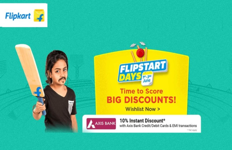 नई दिल्ली:Flipkart पर आज से Flipkart Flipstart Days सेल शुरू हो गयी है, जो 3 जून तक चलेगी। इस सेल के दौरान इलेक्ट्रॉनिक, गैजेट्स समेत कई प्रोडक्ट्स पर भारी डिस्काउंट दिया मिल रहा है। इसके लिए फ्लिपकार्ट ने Axis Bank के साथ पार्टनरशिप की है। यानी अगर फ्लिपकार्ट सेल के दौरान Axis Bank के डेबिट और क्रेडिट कार्ड से भुगतान करते हैं या फिर EMI पर खरीदारी करते हैं तो आपको 10 फीसदी का अतिरिक्त डिस्काउंट मिलेगा।