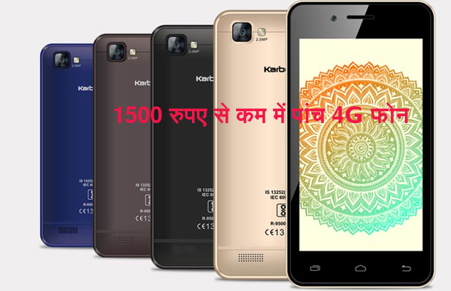 रिलायंस जिओ के JioPhone आते ही मोबाइल और टेलीकॉम कंपनियों द्वारा मार्केट में बेहद सस्ते स्मार्टफोन लॉन्च करने की होड़ मच चुकी है। इसको टक्कर देने के लिए एयरटेल, बीएसएनएल और वोडाफोन अपने बेहद सस्ते स्मार्टफोन लेकर आई है जो 4G हैंडसेट चाहने वालों के लिए बेहद फायदे का सौदा साबित होने वाले हैं। इसमें सबसे बड़ी खूबी इनका 4G स्मार्टफोन्स होने के साथ ही बेहद कम कीमत होना है। ये सभी हैंडसेट्स आपको 1500 रुपए से भी कम कीमत में मिल जाएंगे। ऐसे में पहले जहां 4जी फोन लेने के लिए ग्राहकों को मोटी रकम देनी होती थी वो अब बेहद कम हो चुकी है। यहां हम आपको बता रहे हैं मार्केट में उपलब्ध 5 ऐसे ही स्मार्टफोन्स के बारे में जिनकी कीमत आपको 1500 रुपए से कम पड़ेगी।