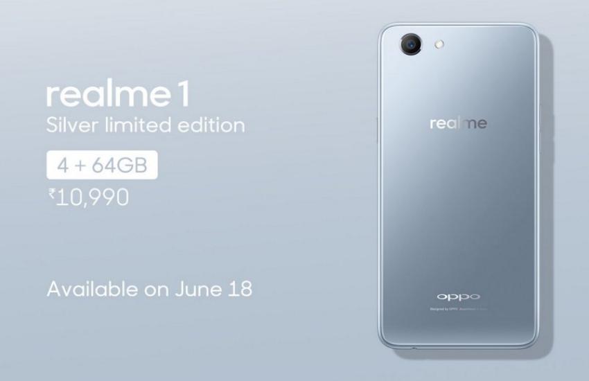 सिल्वर एडिशन वाले रियलमी 1 के 4 जीबी रैम और 64 जीबी स्टोरेज की कीमत 10,990 रुपये है। जो भारत में पहली बार 18 जून से खरीदी जा सकेगा। इस हैंडसेट को सेल के लिए एक्सक्लूसिव तौर पर अमेजन इंडिया पर उपलब्ध कराया जाएगा।
