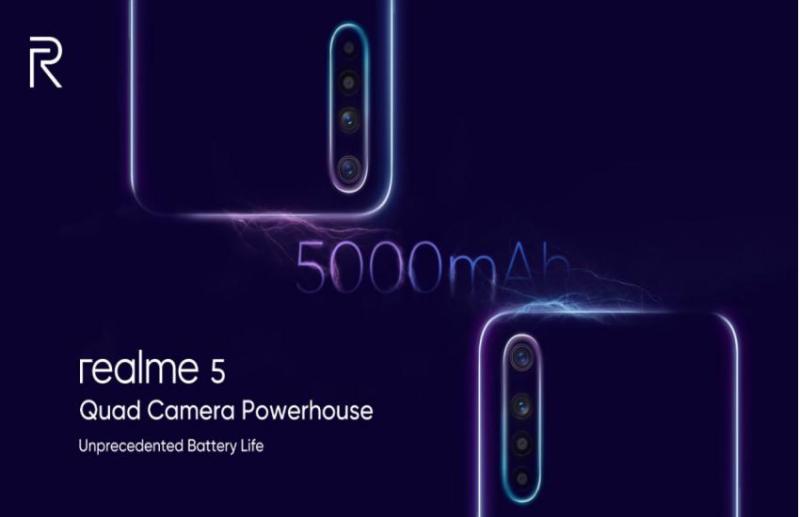 Realme 5 के स्पेसिपिकेशंस की बात करें तो इसमें एचडी प्लस वाटरड्रॉप स्टाइल नॉच डिस्प्ले दिया जा सकता है। इसमें स्नैपड्रैगन 665 SoC प्रोससर होगा। हालांकि फोटोग्राफी के लिए फोन में 64 मेगापिक्सल का सेंसर तो नहीं होगा। लेकिन इसके रियर पर क्वॉर्ड कैमरा सेटअप होगा जिसमें से एक कैमरा 48 मेगापिक्सल का होगा। इस स्मार्टफोन की शुरुआती कीमत 10,000 रुपये हो सकता है।