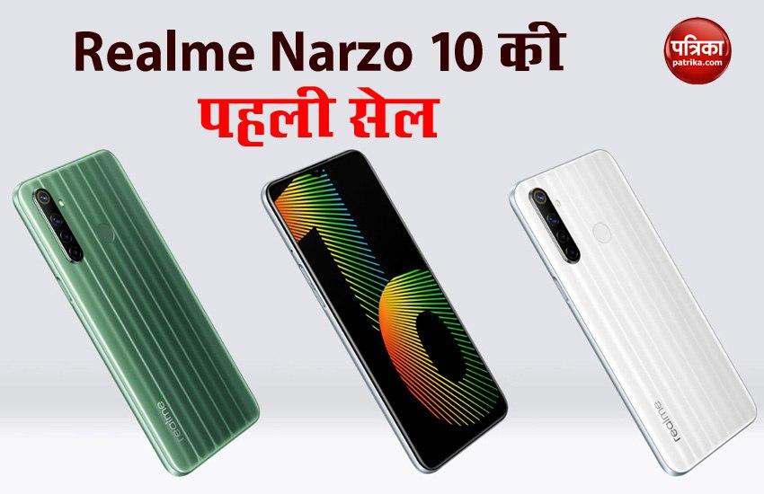 नई दिल्ली। Realme Narzo Series के नए स्मार्टफोन Realme Narzo 10 की आज भारत में सेल आयोजित की गयी है। स्मार्टफोन को ई-कॉमर्स साइट Flipkart और Realme.com से दोपहर 12 बजे खरीद सकते हैं। Realme Narzo 10 को 4GB रैम व 128GB स्टोरेज वेरिएंट में उतारा गया है और इसकी कीमत 11,999 रुपये है। ऑफर्स की बात करें तो ग्राहकों को MobiKwik से भुगतान करने पर 500 रुपये का कैशबैक मिलेगा। इसके अलवा Cashify की तरफ से एक्सचेंज ऑफर दिया जा रहा है। वहीं Jio यूजर्स को डबल डाटा का बेनिफिट्स भी मिल रहा है। हालांकि इसके लिए 349 रुपये वाला रीचार्ज कराना होगा।