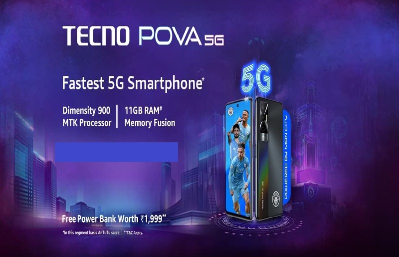 टेक्नो (Tecno) ने अपना पहला 5G स्मार्टफोन टेक्नो पोवा (Tecno Pova 5G) भारत में लॉन्च कर दिया है। यह स्मार्टफोन 6000 एमएएच की बैटरी और Dimensity 900 चिपसेट के साथ आता है। इसमें 50 मेगापिक्सल का ट्रिपल रियर कैमरा सेटअप और 16 मेगापिक्सल का सेल्फी कैमरा मिलेगा। इसके अलावा फोन में वर्चुअल रैम और 128 जीबी की इंटरनल स्टोरेज दी गई है। आइए जानते हैं टेक्नो पोवा 5जी के फीचर्स और कीमत के बारे में...
