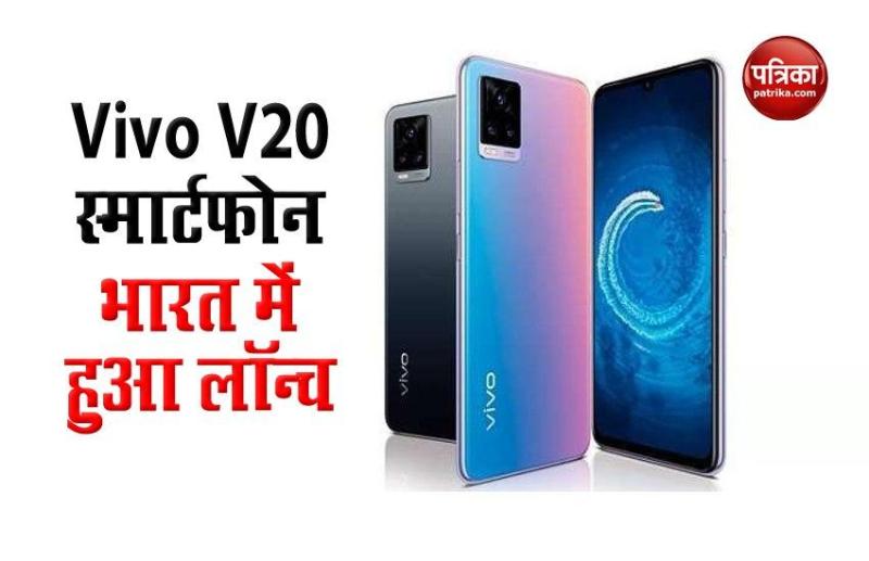 Vivo V20 स्मार्टफोन में 6.44 इंच का एचडी का डिस्प्ले है और फोन में क्वॉल-कोम स्नैपड्रैगन 720जी AIE प्रोसेसर है। फोटोग्राफी के लिए ट्रिपल रियर कैमरे का सेटअप दिया गया है। जिसका पहला कैमरा 64 मेगापिक्सल, दूसरा 8 मेगापिक्सल और तीसरा 2 मेगापिक्सल है। वहीं सेल्फी और वीडियो कॉलिंग के लिए 44 मेगापिक्सल का फ्रंट कैमरा है। वीवो का यह फोन काफी स्लिम है। इसकी मोटाई मात्र 7.38mm है इसमें पावर के लिए 5000 एमएएच की बैटरी दी गई है, जो 18W फास्ट चार्जिंग पर काम करती है। इस स्मार्ट फोन की सबसे बड़ी खासियत यह है कि इसमें इनडिस्प्ले फिंगर प्रिट सेंसर दिया गया है।