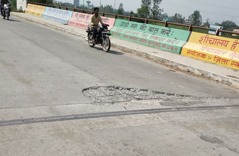 मुरादाबाद: बारिश से ज्यादातर सड़कें और पुल खस्ताहाल में पहुंच चुके हैं, जिससे योगी सरकार के गड्ढा मुक्त सड़कों का वादा धराशाई होता दिख रहा है। क्यूंकि इन खस्ताहाल सड़कों से आये दिन हादसे हो रहे हैं। वहीँ शहर को उत्तराखंड से जोड़ने वाला इस्लामनगर पुल इस कदर खस्ताहाल में पहुंच गया है कि अब पुल की सड़क भी धंस गयी है। जिससे कभी इस पर हादसा हो सकता है। पिछले दिनों इसको लेकर अधिकारीयों को कमिश्नर ने चेताया भी था। लेकिन हालात जस के तस हैं।
