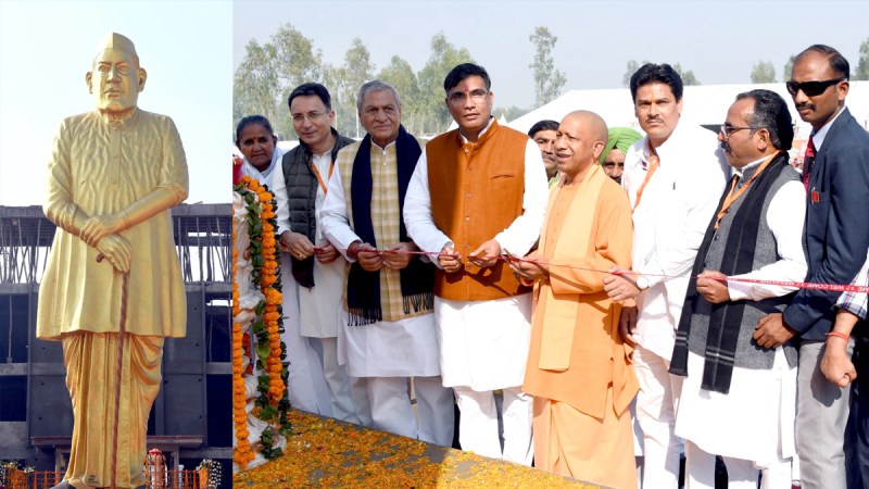चौधरी चरण सिंह की प्रतिमा का अनावरण करते सीएम योगी