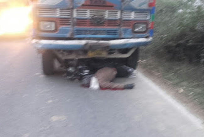 ठाकुरद्वारा-स्योहारा रोड पर बुधवार की सुबह साढ़े छह बजे के करीब पानूवाला निवासी प्रिंसिपल ऋषिराज सिंह सुबह बाइक से कॉलेज जा रहे थे। गुलाबनगर में दूल्हापुर मोड़ पर रोड क्रॉस करते समय खनन से लदे एक ट्रक ने उनकी बाइक को टक्कर मार दी। इससे वे बाइक समेत ट्रक के नीचे दब गए। जिस कारण उनकी मौके पर मौत हो गई। जबकि उनकी बाइक चकनाचूर हो गई। घटना के बाद राहगीरों के साथ ग्रामीणों की भारी भीड़ जमा हो गई। सूचना पर पहुंची पुलिस ने ट्रक को कब्जे में ले लिया, जबकि ट्रक चालक भाग गया। पुलिस ने शव को कब्जे में लेकर पोस्टमार्टम के लिए भेज दिया है। प्रिंसिपल की मौत से कॉलेज स्टाफ और छात्रों में शोक माहौल है। आरएसएम ग्रुप आफ कालेज के एमडी राजेश सिंह ने प्रधानाचार्य की मौत को शिक्षा क्षेत्र की बड़ी हानि बताकर शोक संवेदना व्यक्त की है।