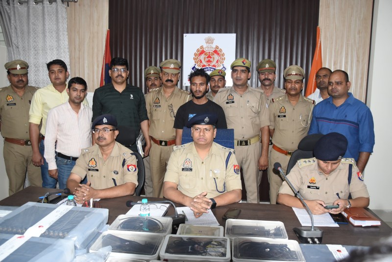 प्रेस कॉन्फ्रेंस के दौरान पेश किया गया आरोपी