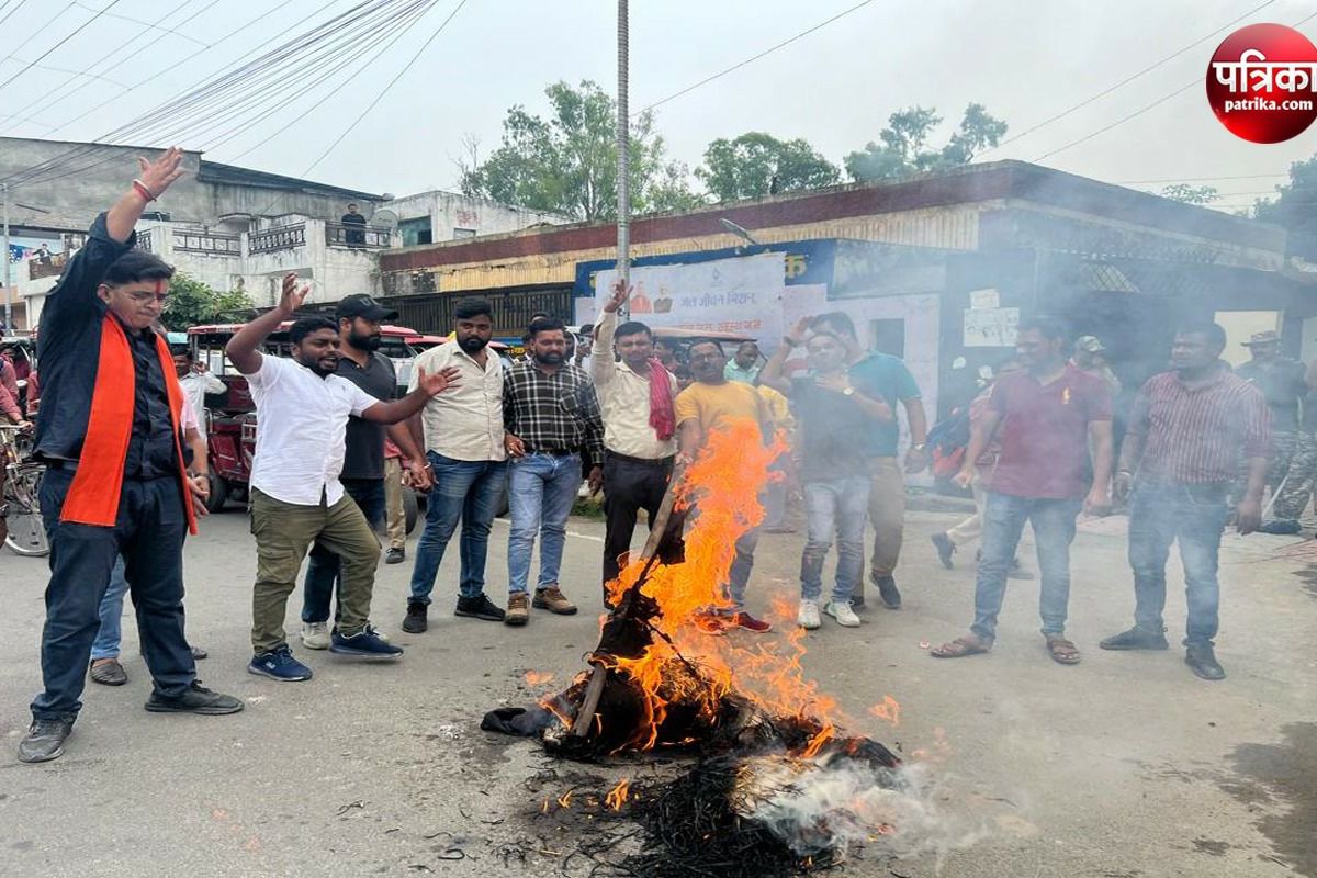 Haryana Nuh Violence: हरियाणा में भड़की हिंसा के विरोध में बजरंगदल के देश व्यापी आंदोलन के तहत मुरादाबाद के पीली कोठी चौराहे पर जाम लगाकर प्रदर्शन किया। इस दौरान प्रदर्शनकारी जय श्री राम और हर-हर महादेव के साथ तमाम उत्तेजक नारेबाजी तथा भड़काऊ बयानबाजी भी की। मौके पर मौजूद पुलिस और प्रशासनिक अधिकारी प्रदर्शनकारियों को समझाते रहे। प्रदर्शनकारियों ने घटना के पीछे पाकिस्तान का हाथ बताया और जेहाद आतंकवाद का पुतला दहन किया। प्रदर्शनकारियों ने दोषियों को सरेराम फांसी लगाने की मांग की है।