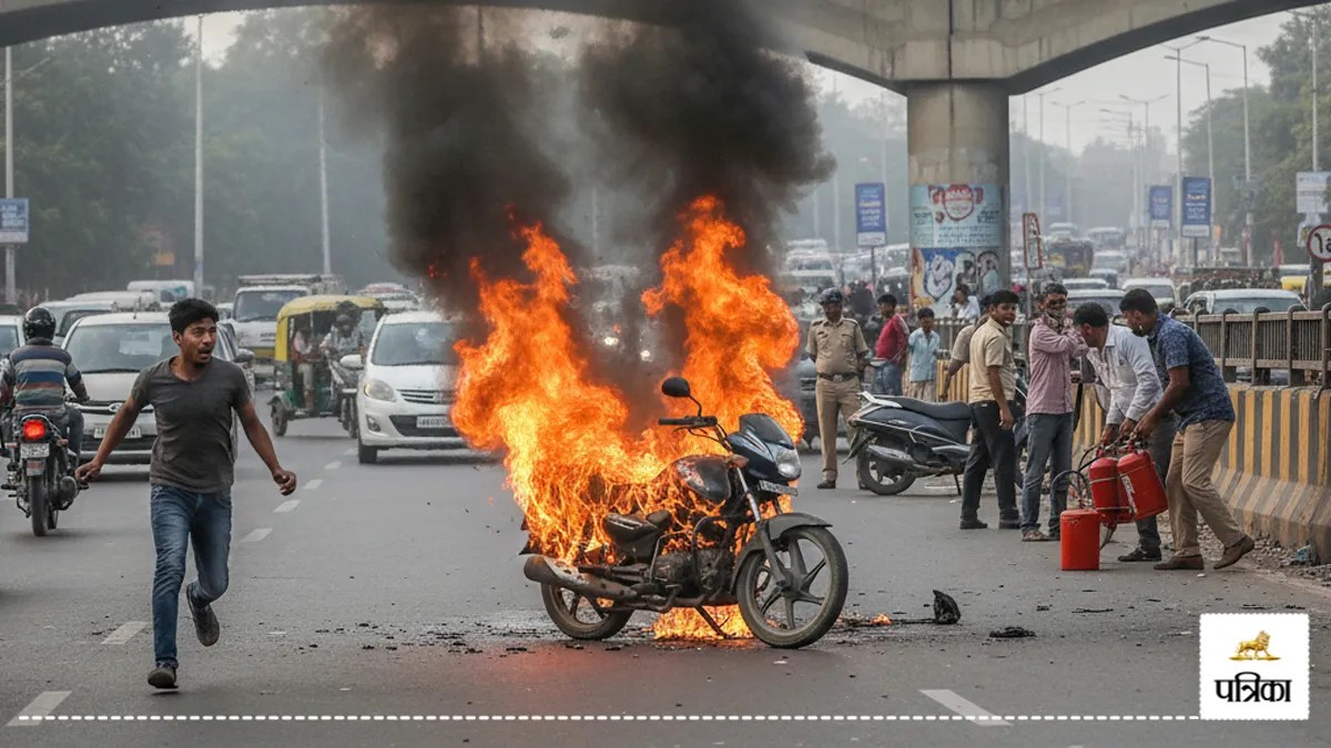Bike catches fire on moradabad road: उत्तर प्रदेश के मुरादाबाद के दिल्ली रोड पर रविवार दोपहर उस समय अफरा-तफरी मच गई जब गागन नदी पुल के पास एक बाइक अचानक आग की लपटों में घिर गई। बाइक पर सवार युवक ने तुरंत प्रतिक्रिया दी और बाइक को सड़क किनारे रोकने की कोशिश की। जब लपटें बढ़ीं तो उसने बाइक वहीं गिरा दी और सुरक्षित स्थान की ओर भाग गया।