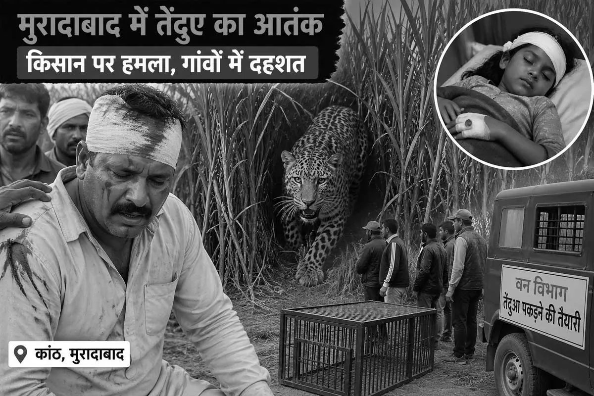 Leopard Attack Moradabad: मुरादाबाद के कांठ थाना क्षेत्र में उस समय हड़कंप मच गया, जब गन्ना काट रहे 40 वर्षीय किसान कपिलदेव सिंह पर तेंदुए ने अचानक हमला कर दिया। सुबह के समय खेत में काम कर रहे किसान को जरा भी अंदाजा नहीं था कि गन्ने की फसल में घात लगाए बैठा जंगली जानवर उन पर झपट पड़ेगा। तेंदुए के हमले के बाद खेत में अफरा-तफरी मच गई और आसपास के लोग डर के मारे इधर-उधर भागने लगे।