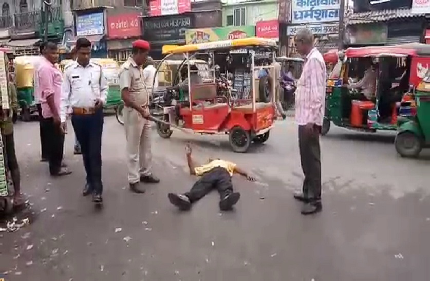 खाखी ने किया फिर शर्मसार, बीच सड़क पर पड़े शख्स के साथ किया अमानवीय व्यवहार