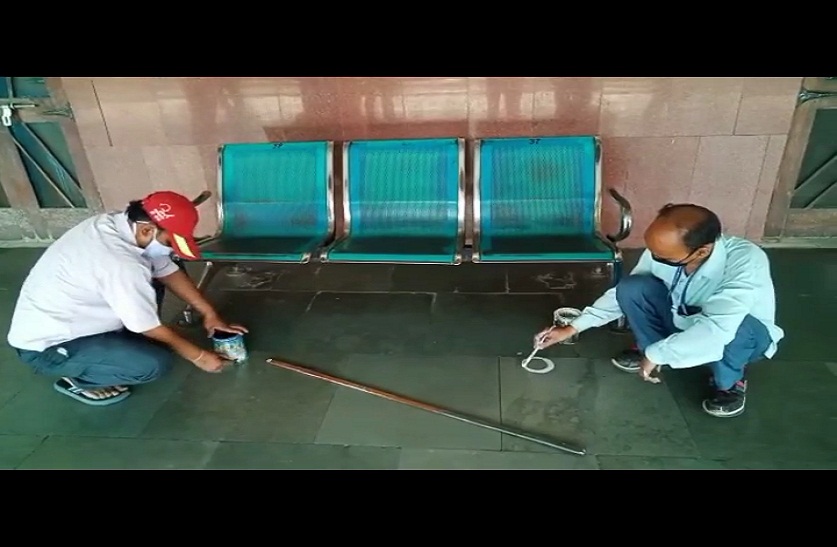 कोरोना में एक दूसरे से नजदीकी बनाने के लिए भले ही मना हो, मगर यात्री अपने सफर से समझौता करने को तैयार नहीं है। लिहाजा सोशल डिस्टेंसिंग का फॉर्मूला अपनाते हुए रेलवे द्वारा प्लेटफार्म पर सर्कल बनाने का कार्य कराया जा रहा है।