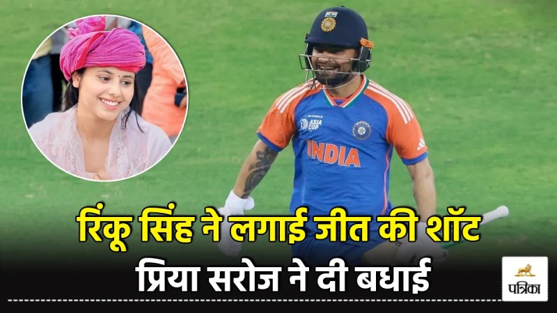 विनिंग शॉट के तुरंत बाद रिंकू सिंह की मंगेतर और सांसद प्रिया सरोज ने वीडियो कॉल के जरिए उन्हें बधाई दी। इस मौके की फोटो उन्होंने सोशल मीडिया पर साझा की और इंडिया-इंडिया लिखकर देश के लोगों के साथ अपनी खुशी बांटी। साथ ही उन्होंने टीम इंडिया के खिलाड़ियों का पोस्टर शेयर कर टीम के प्रदर्शन की सराहना की।