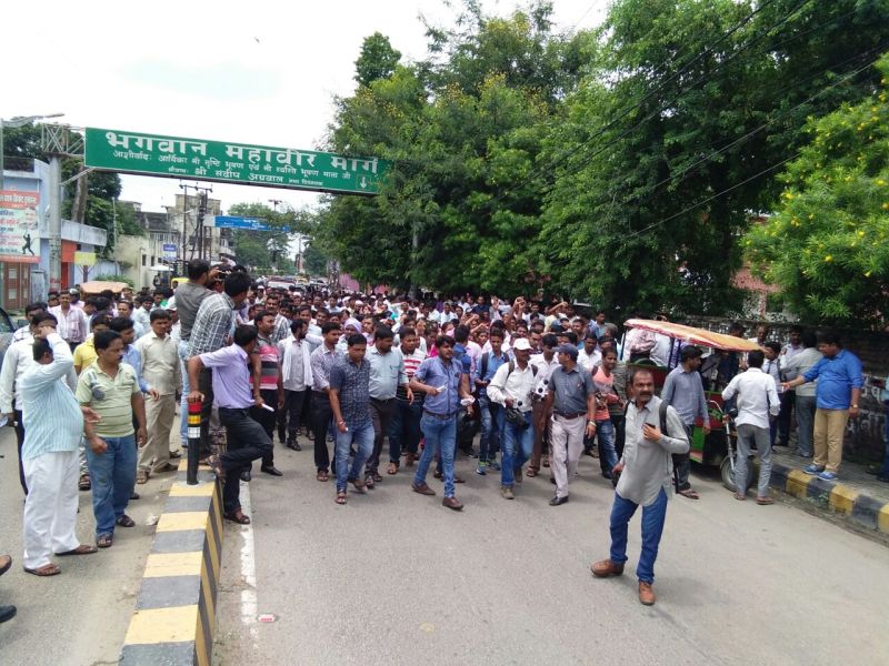 मुरादाबाद. मंगलवार को सुप्रीम कोर्ट द्वारा उत्तर प्रदेश में एक लाख 72 हजार शिक्षा मित्रों की नियुक्ती को लेकर जो फैसला दिया गया है। उसने शिक्षा मित्रों की उम्मीदों को तोड़ दिया है। इसी को लेकर अब उनके पास सिवाय उत्तर प्रदेश सरकार से सेवा नियमावली में संशोधन के अलावा कोई चारा नहीं बचा है। आज मुरादाबाद में आदर्श समायोजित शिक्षक वेल्फयेर एसोसिएशन के बैनर तले शिक्षा मित्रों ने विरोध प्रदर्शन किया। और मुख्यमंत्री को संबोधित एक ज्ञापन जिलाधिकारी को सौंपा।