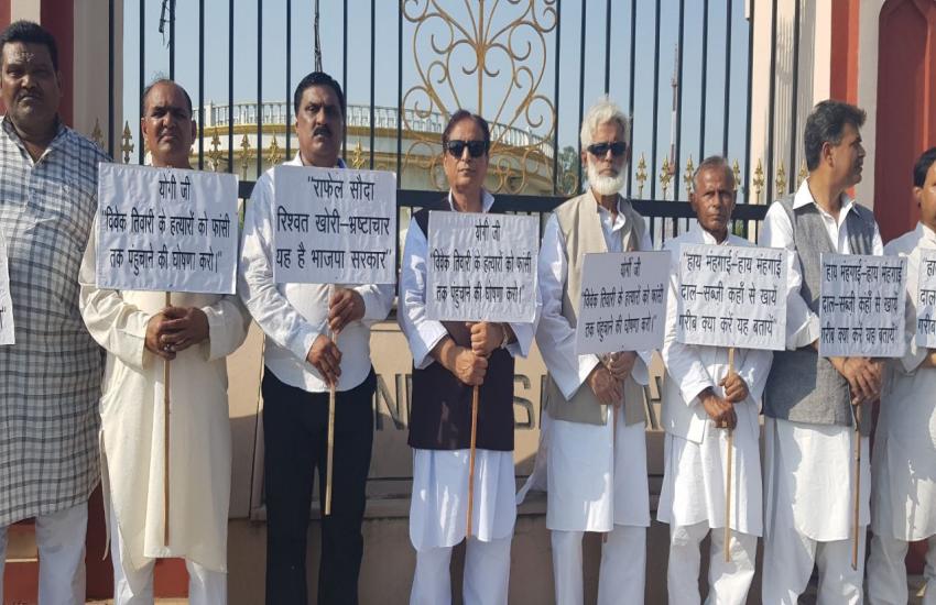 सपा नेताओं की तख्तियों पर लिखे थे ये नारे