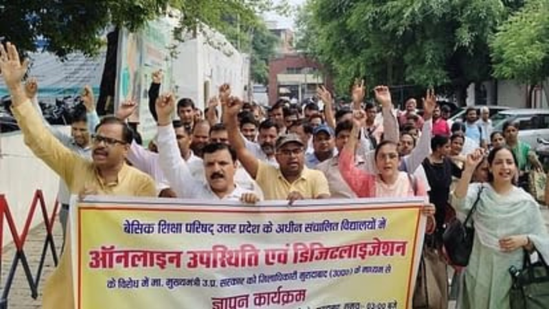 Moradabad News Today: उत्तर प्रदेश प्राथमिक शिक्षक संघ के बैनर तले बेसिक स्कूलों के शिक्षक मुरादाबाद के कलक्ट्रेट पर एकत्र हुए। उन्होंने ऑनलाइन हाजिरी, पंजिकाओं के डिजिटलीकरण के विरोध समेत समेत विभिन्न मुद्दों पर डीएम के जरिये सीएम को ज्ञापन भेजा। शिक्षकों ने सरकार से अपील की है कि ऑनलाइन हाजिरी व पंजिकाओं के डिजिटलीकरण के आदेश वापस लिए जाएं।
