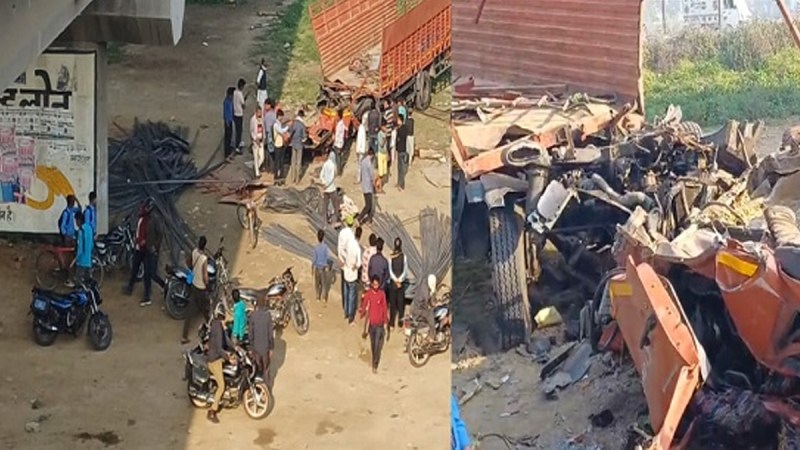 सरिया से भरा ट्रक पुल की रेलिंग तोड़ 40 फीट नीचे गिरा, ड्राइवर और हेल्पर की मौत..