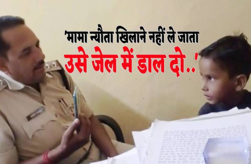 शनिवार को अंबाह पुलिस थाने में एक ढाई साल का मासूम बच्चा अकेले पहुंचा और अपनी पीड़ा बताई। बच्चे की बात सुनकर पुलिसकर्मी भी उसे अंबाह थाना प्रभारी के पास ले गए जिनके सामने बच्चे ने मामा की शिकायत दर्ज कराते हुए मामा को जेल में डालने की मांग की। बच्चे ने थाना प्रभारी से कहा कि उसका मामा लाखन उसकी मां से लड़ाई करता है और उसे न्यौता खिलाने के लिए भी अपने साथ नहीं ले जाता है और इसके लिए उसे जेल में डाल दो। बच्चे का मन रखने के लिए थाना प्रभारी ने भी कागज पेन लिया और बच्चे से उसका नाम व मामा का नाम पूछा। थाने पहुंचकर बच्चे के द्वारा मामा की शिकायत करने का वीडियो भी पुलिसकर्मियों ने बनाया है जो तेजी से वायरल हो रहा है।