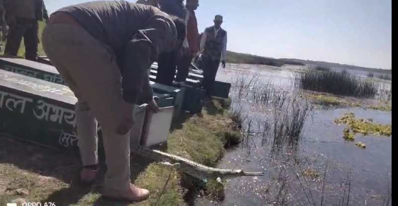चंबल नदी के पाली घाट पर छोड़े 32 घडिय़ाल