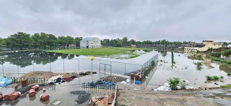 मुरैना. भीमराव अंबेडकर स्टेडियम के सिंथैटिक ट्रैक निर्माण पर 4.50 करोड़ रुपए खर्च किया जा चुका है, इस पर पानी नही भरे, इसके लिए ड्रेनेज सिस्टम भी तैयार किया था लेकिन सिस्टम सफल नहीं हो सका और करोड़ों का ट्रैक पानी में डूब चुका है। पूरे स्टेडियम में दो फीट गहराई तक पानी भरा है।