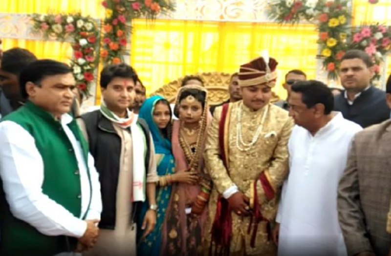 मुख्यमंत्री कमलनाथ और ज्योतिरादित्य सिंधिया आए साथ साथ, वर-बधू को दिया आशीर्वाद