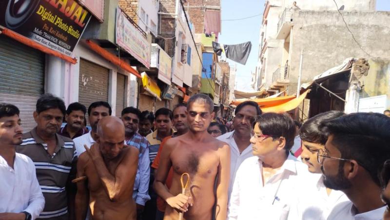 जैन मुनि की अगवानी के दौरान छोटे-छोटे बच्चे सफेद कुर्जा-पायजामा में भजन गा रहे थे-जैन मुनि देख लो, त्याग करना सीख लो, एक-दो-तीन-चार, जैन धर्म की जय-जयकार। वहीं महिलाएं अलग मंडल की साड़ी पहनकर पदयात्रा में शामिल हुईं। जैन मुनि पदयात्रा करते हुए जग्गा रोड, सिनेमा रोड, नगरपालिका चौराहा, बाजार से होकर गंज पहुंचे। यहां आकाश जैन के यहां भक्तों ने आरती कर पाद प्रक्षालन किया। इसके बाद मुनिश्री परेड जैन मंदिर होते हुए बड़ा जैन मंदिर, छोटा मंदिर, किला रोड से बड़ी जैन धर्मशाला पहुंचे।