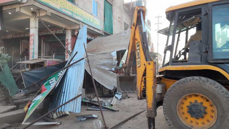 मुरैना. नगर निगम व राजस्व अमले ने फाटक बाहर अंबाह रोड पर अतिक्रमण विरोधी अभियान चलाया। शनिवार को अधिकारियों ने पुलिस फोर्स की मौजूदगी में एक किमी के एरिया में करीब 100 अतिक्रमण हटाए गए। इस अवसर पर नगर निगम आयुक्त सतेन्द्र धाकरे, एसडीएम भूपेन्द्र सिंह, निगम के मदालखत दस्ता प्रभारी इंजी. ऋषिकेश शर्मा अन्य कर्मचारी व पुलिस फोर्स मौजूद रहा।