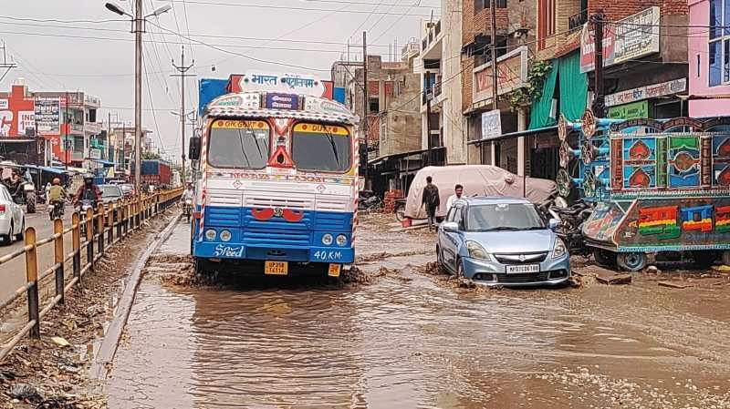 मुरैना. नेशनल हाइवे क्रमांक 552 जौरा रोड पर बारिश का पानी भर जाने से गहरे गड्ढों में फंसकर वाहन पलट रहे और फंस रहे जिसके दिन भर जाम के हालात रहते हैं।
