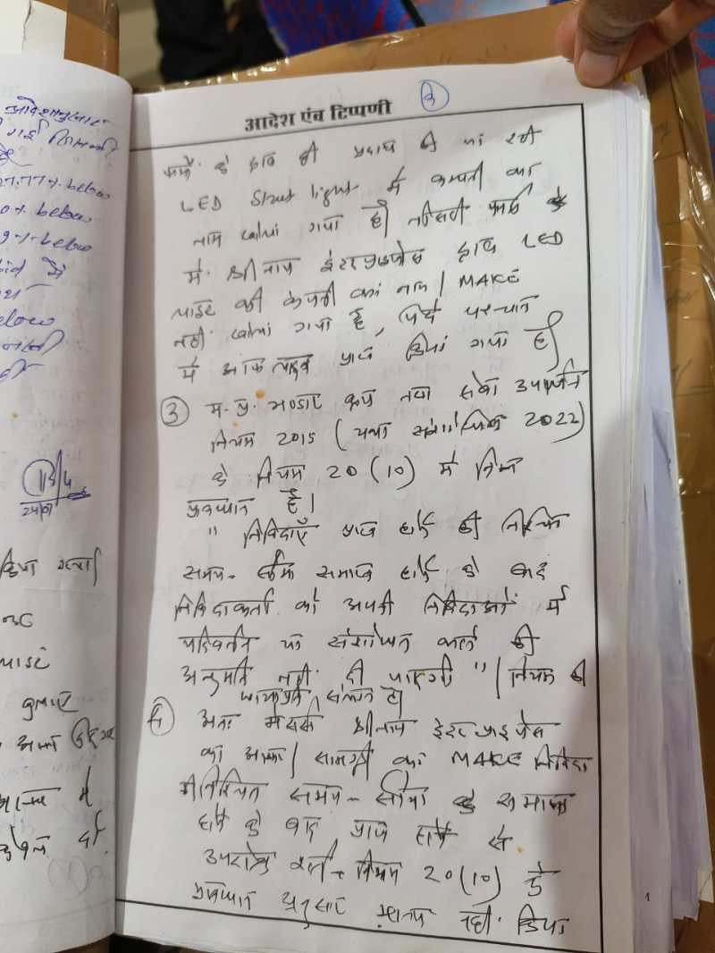 यहां बता दें कि नगर निगम के 47 वार्डों के लिए 2000 एलइडी क्रय किए जाने के लिए टेंडर कॉल किया गया। तीन फर्मों के टेंडर फॉर्म आए। सबसे कम रेट की फर्म का टेंडर स्वीकृत करते हुए नोटशीट आगे के लिए प्रस्तावित कर दी लेकिन बाद में दूसरे नंबर की फर्म के टेंडर आवेदन में डीलरशिप के लेटर लगाकर पहली वाली फर्म का टेंडर निरस्त यह आपत्ति लगाकर निरस्त कर दिया कि टेंडर फॉर्म में डीलरशिप का अथोराइज्ड लेटर नहीं लगा था। विशेष तो यह है कि पूरी प्रक्रिया ऑनलाइन थी फिर बाद में डोकोमेंट कैसे सम्मिट हो गए।