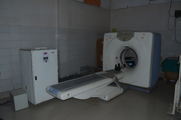 जिला अस्पताल में बंद पड़ी सीटी स्केन मशीन।