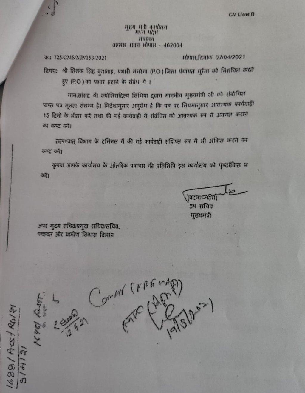 -पीओ को लेकर मुख्यमंत्री कार्यालय से लिखा गया पत्र
