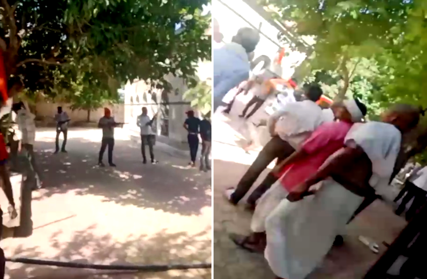 दो पक्षों का विवाद सुलझाने मंदिर में लगी पंचायत, अचानक शुरु हुई फायरिंग से मची भगदड़, VIDEO