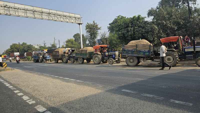 पुलिस के सामने खड़े रहे रेत से भरे एक दर्जन ट्रैक्टर- ट्रॉली