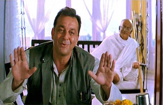 जब दोनों गाल पर थप्पड़ पड़ जाए तो क्या करने का, ये बापू ने कहां अपने को ...(मुन्ना भाई)