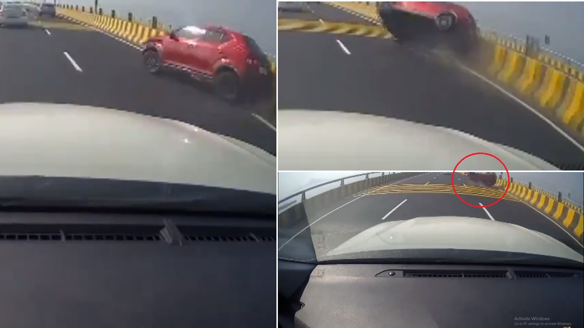 MTHL Bridge Accident: मुंबई ट्रांस-हार्बर लिंक (एमटीएचएल) ब्रिज यानी अटल सेतु पर बड़ा हादसा हुआ है। एमटीएचएल पर तेज रफ्तार एक कार बेकाबू होकर कई बार पलटी। इस घटना का रोंगटे खड़े कर देने वाला वीडियो सोशल मीडिया पर वायरल हो गया है। अधिकारियों के मुताबिक, अटल सेतु पर यह पहला हादसा है।